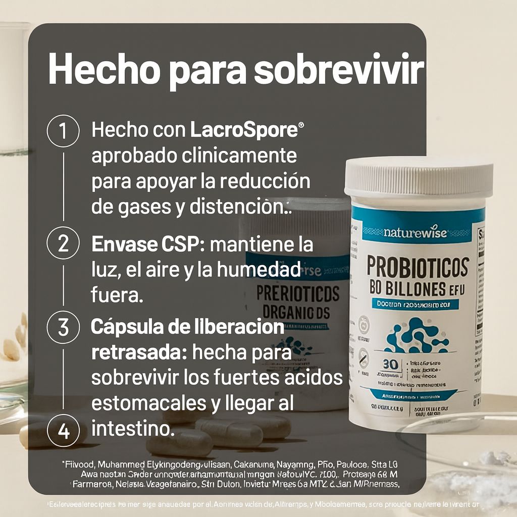 60 mil millones de CFU + 10 cepas activas que ayudan a reducir hinchazón, mejorar tránsito y equilibrar tu microbioma.