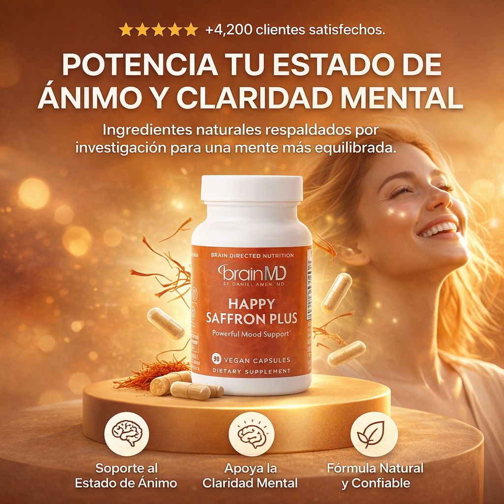 Happy Saffron Plus está formulado para ayudar a mejorar el estado de ánimo y reducir la sensación de ansiedad diaria, de forma natural.